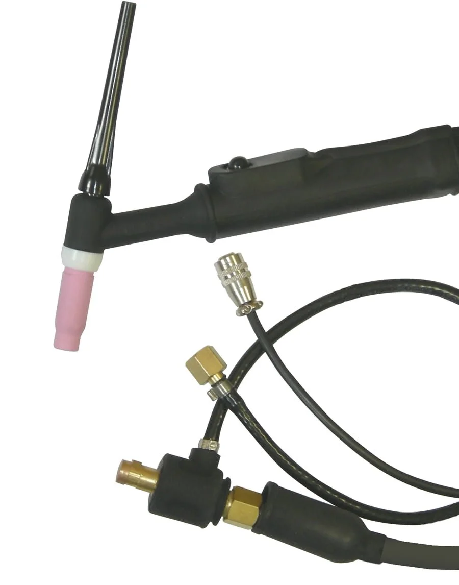 The WP26 TIG Torch features a Dix adaptor and switch plug for seamless operation. Its robust design ensures longevity, while the ergonomic handle enhances comfort. Ideal for TIG welding, this torch is a dependable choice for professionals.